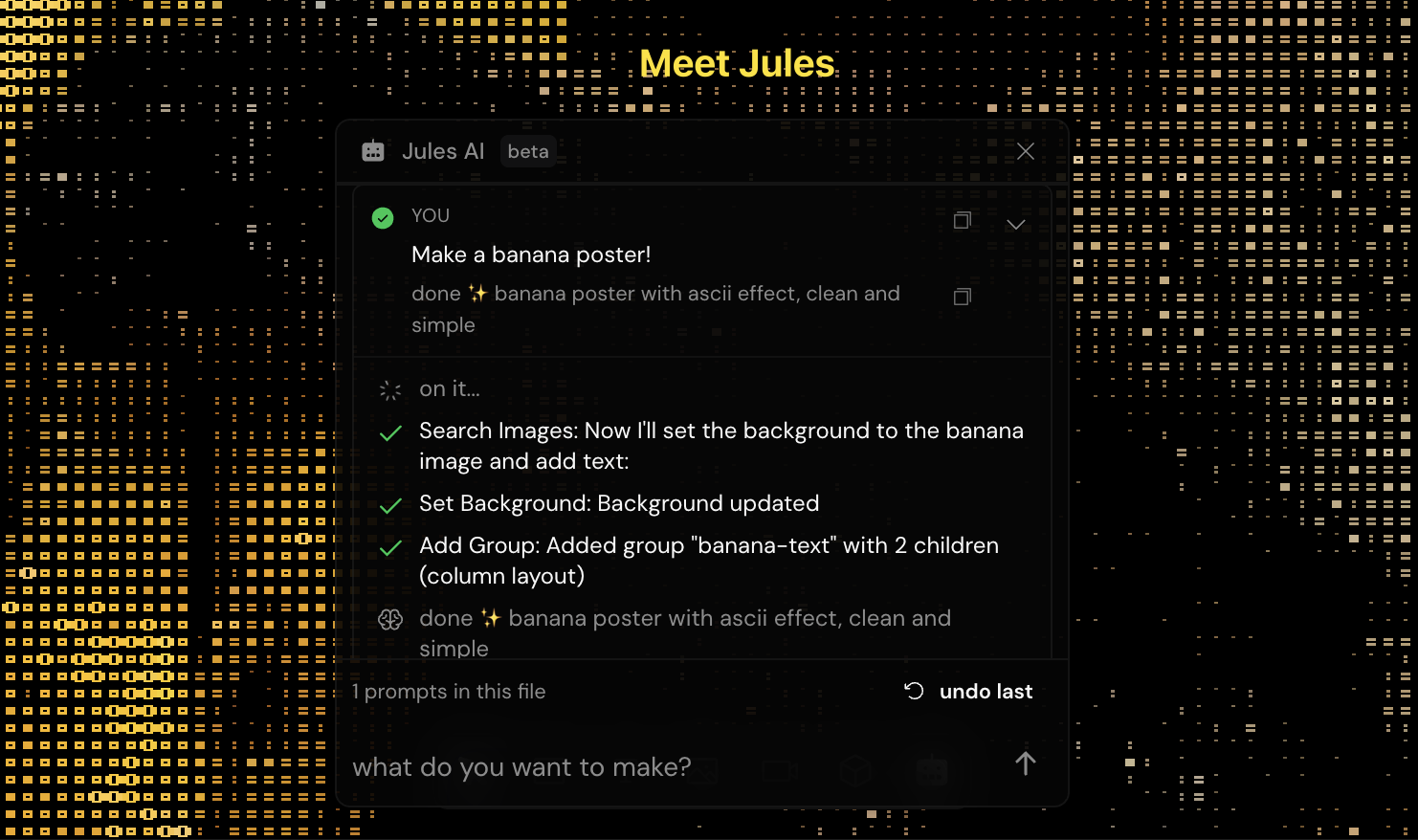 - Jules AI (early alpha) - describe a poster and Jules takes a shot at building it. Designs still need work, but it's a fun starting point to riff onfeature